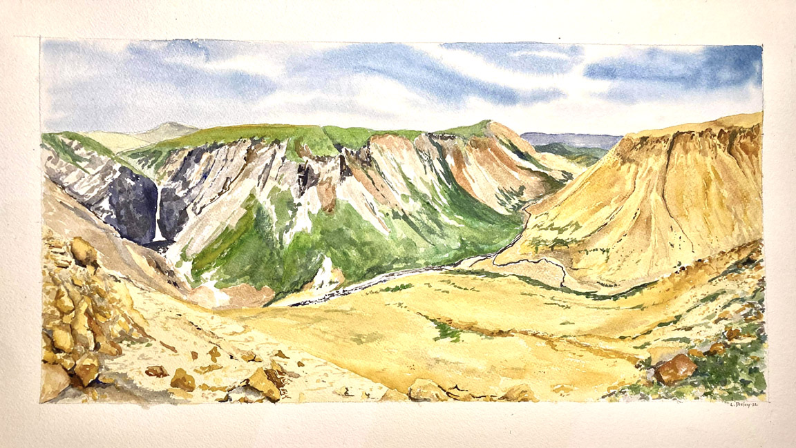 Prior to the launch of the video, Lori and Joanne gave presentations on their approach to painting and interpretation of the scenes, provided as photos by Cabox Chairperson Paul Wylezol, who has spent many years exploring the region on behalf of the International Appalachian Trail Newfoundland and Labrador (IATNL).