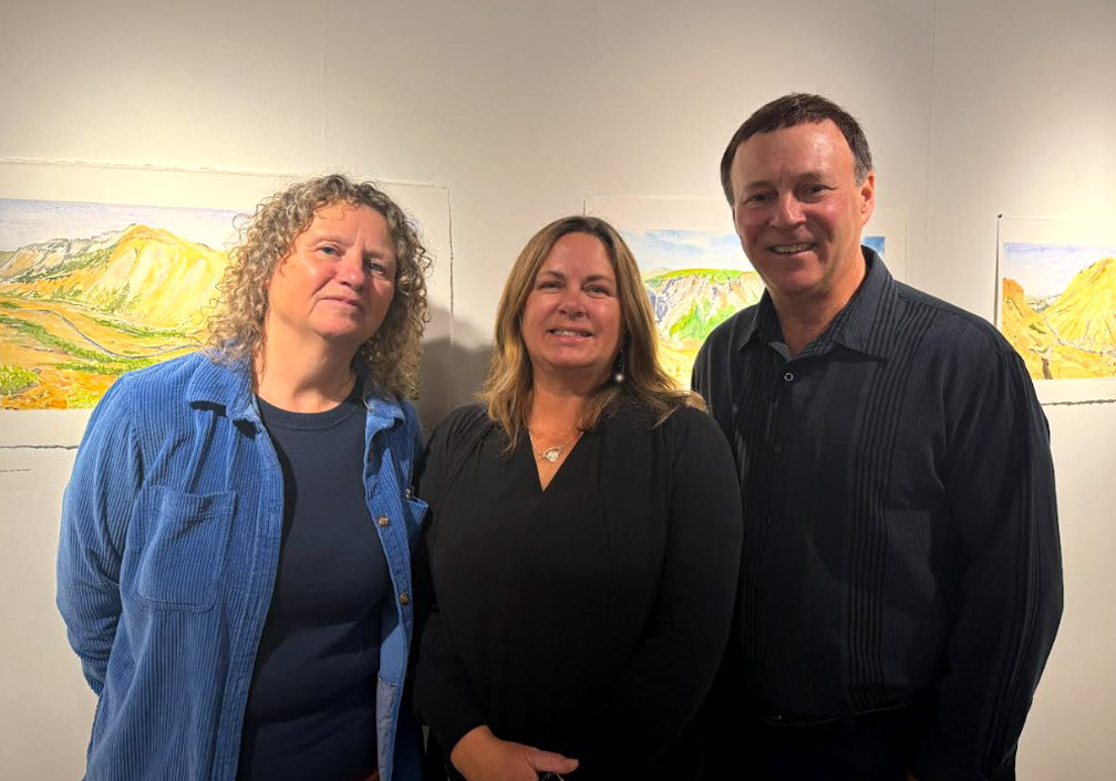 Coinciding with the launch of the video was an exhibit of Lori and Joanne’s painting in the adjoining Tina Dolter Gallery. Entitled Foundations, Geology of the Bay of Islands and Lower Humber Valley, the collection of Lori’s watercolor landscapes and Joanne’s acrylic details presents a comprehensive view of the diverse geology of the Geopark region, which played a supporting role in the development of the scientific theory of plate tectonics in the 1960s.