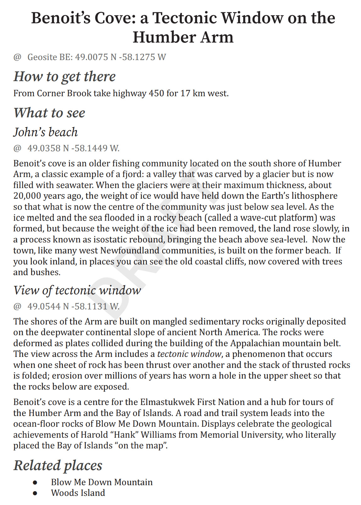 Geosite – Benoit’s Cove (BE)