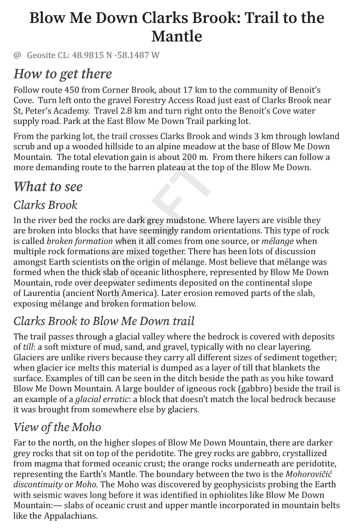 Geosite – Blow Me Down Mountain – Clarks Brook (CL)