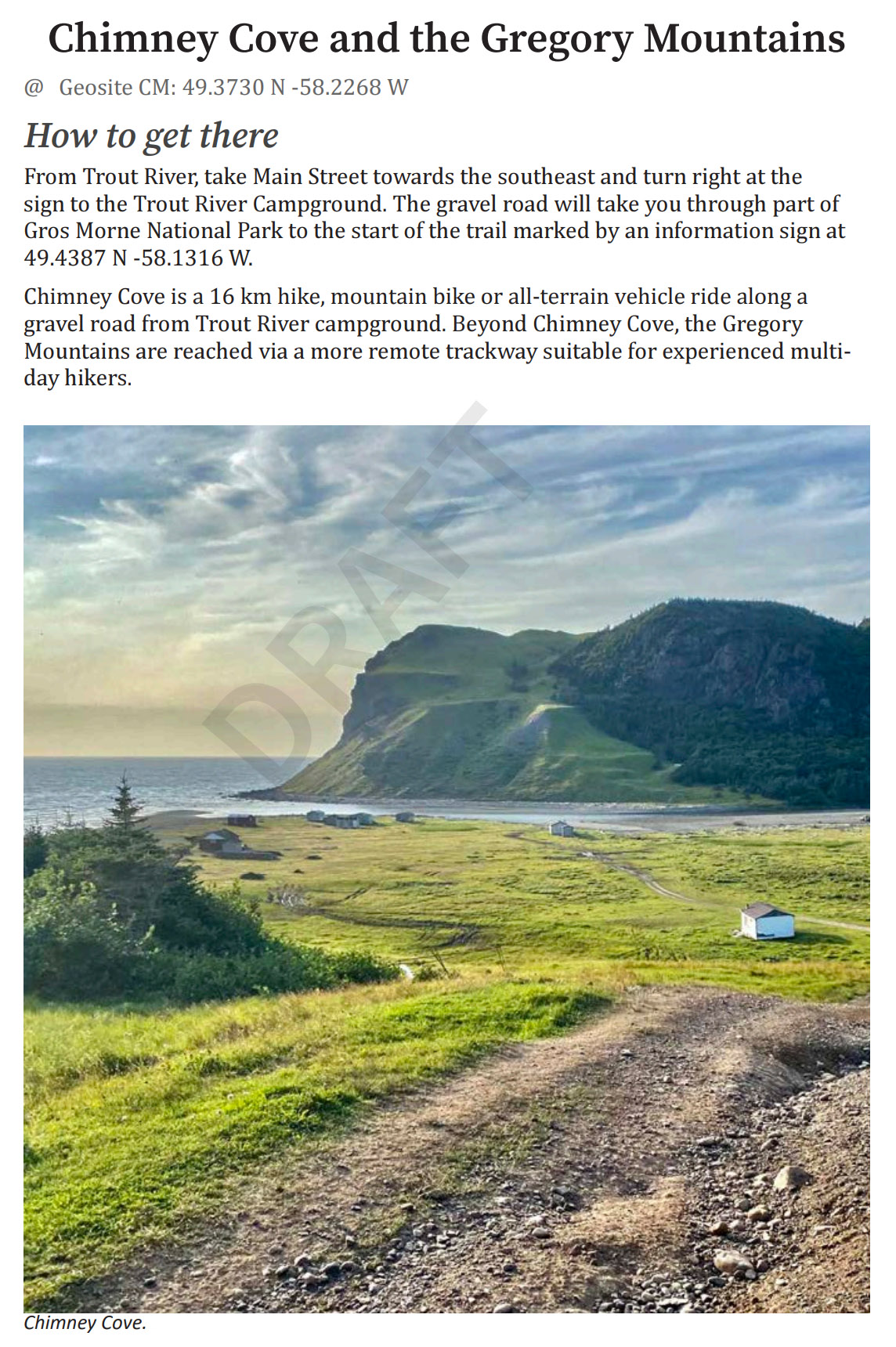 Geosite – Chimney Cove / Gregory Mountains (CM)