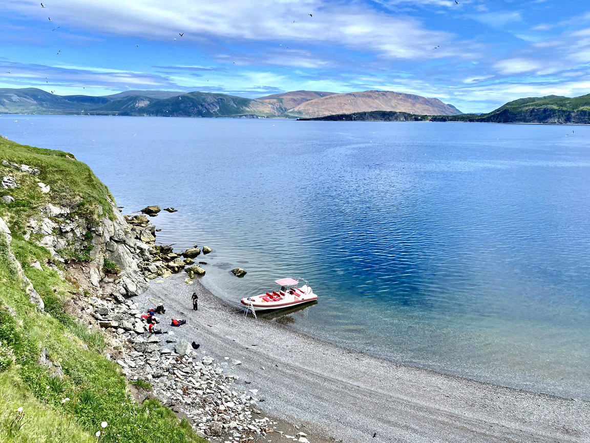The 7 km stretch of coastline surrounding Big Head is only accessible by boat. Group zodiac tours can be arranged through Everoutdoor Adventures.